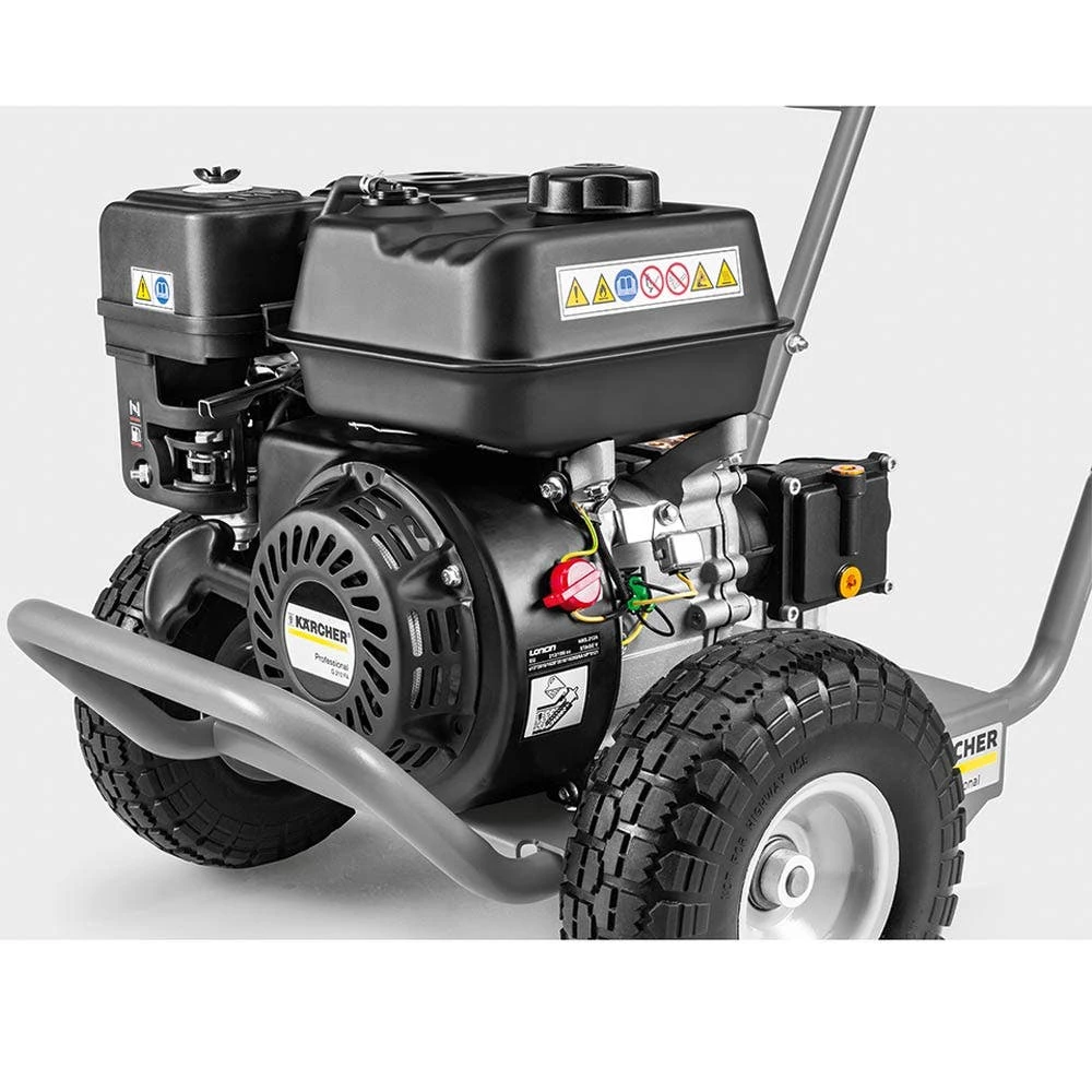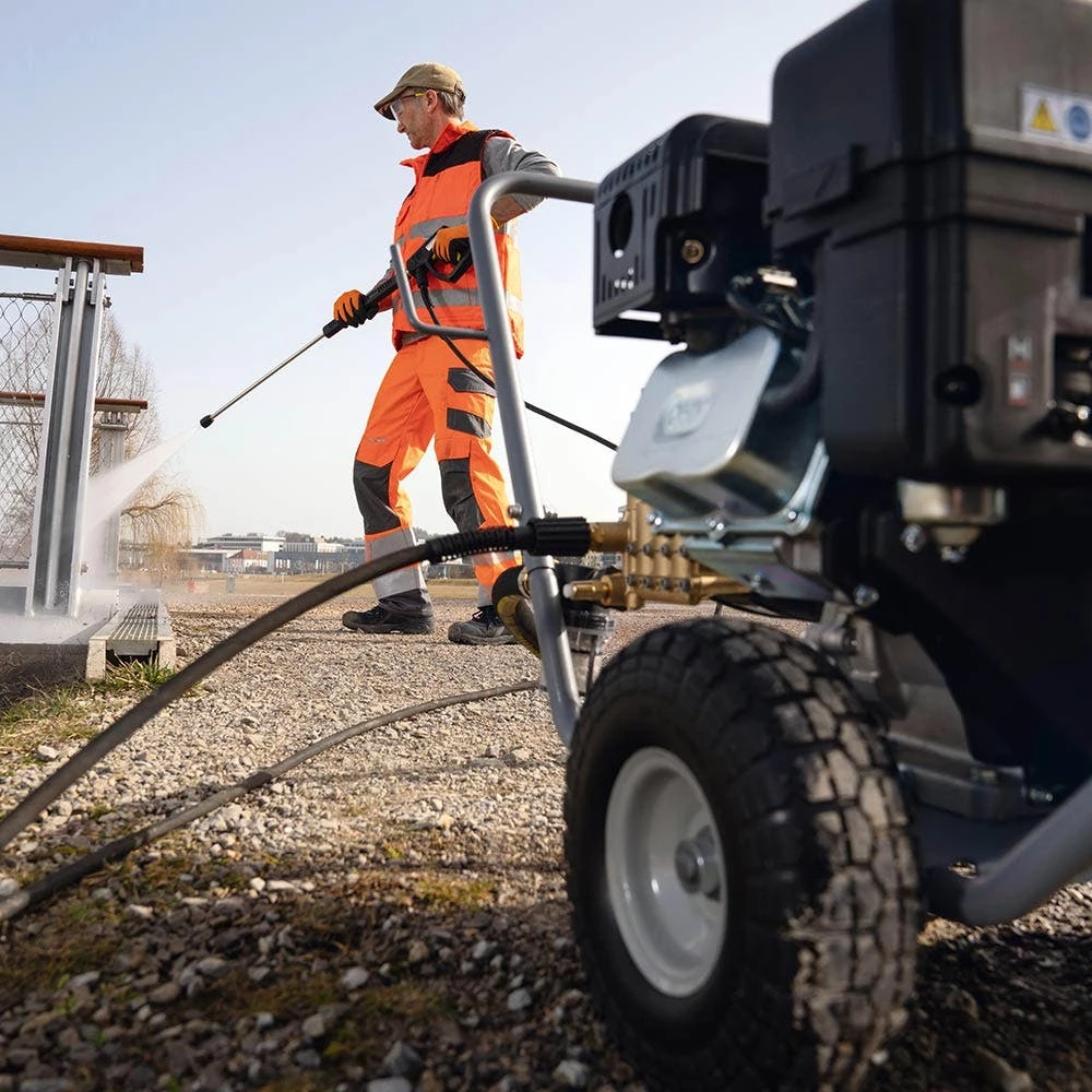 - A robust tubular steel frame reliably protects the machine against damage. Proven safety technology such as thermo and safety valve and water filter. Crankshaft pump with ceramic pistons.