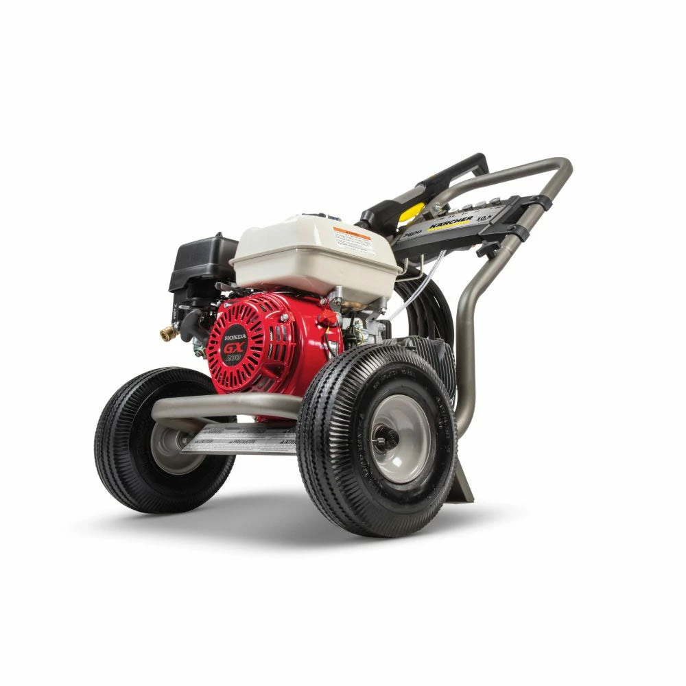 Quick Connect high pressure hose, you’ll be up and running in a snap. Other features include Pnuematic tyres for smooth maneuverabilty and onboard storage for all accessories.