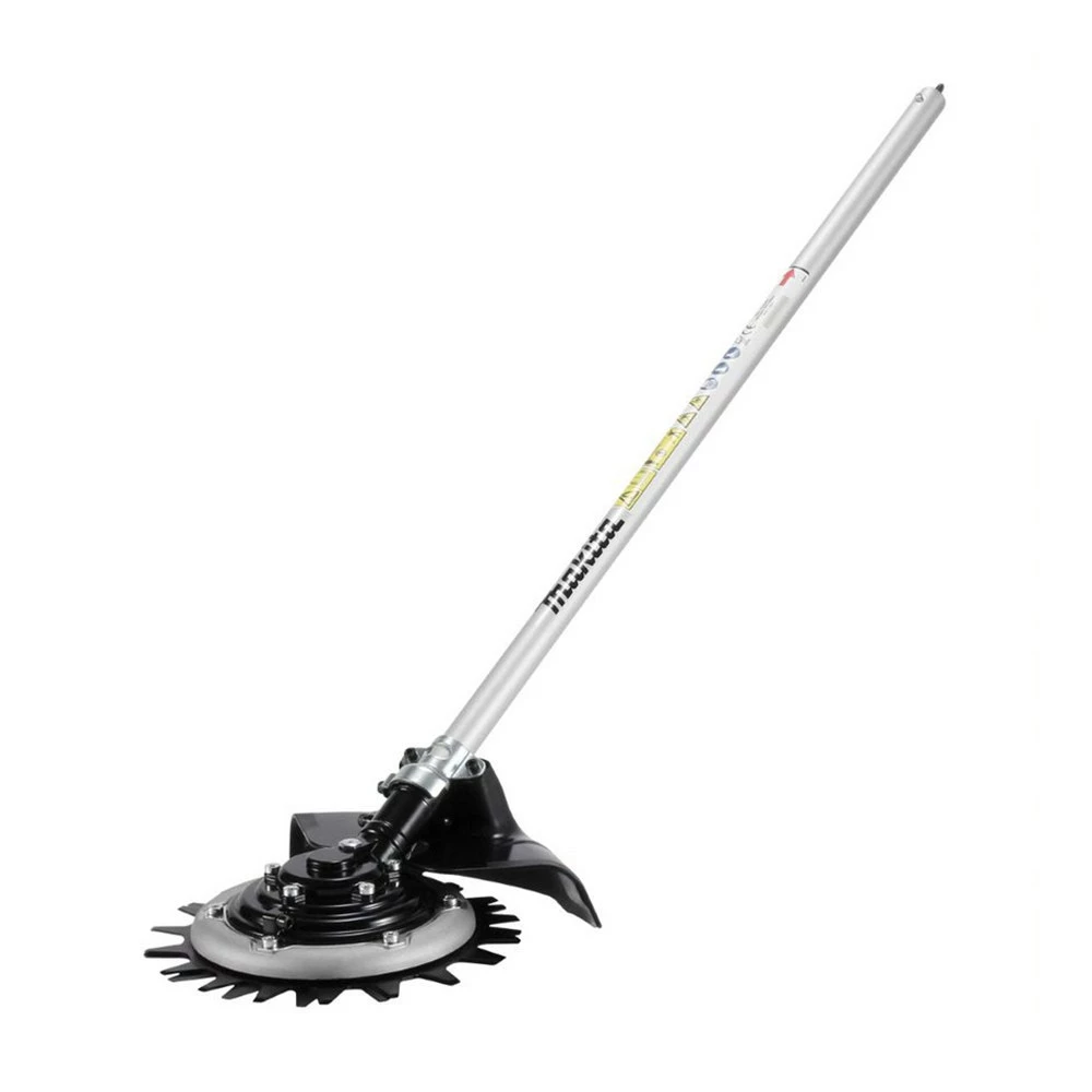 The 191M55-5 (EM407MP) Rotary Scissors Attachment is compatible with each of Makita’s Multi-function Powerheads –DUX60, DUX18, and EX2650LH. The Rotary Scissors Attachment is designed to remove grass and weeds from a variety of surfaces including removing weeds from gravel and concrete areas and long grass from tight areas a lawnmower may not be able to reach. Thanks to the low rotational speed, EM407MP reduces the velocity of debris that is thrown when cutting weeds and grasses and doesn’t damage your lawn as a line trimmer can. Weighing 2.7kg as an attachment, the EM407MP is the perfect tool to give your lawn a professional finish.
