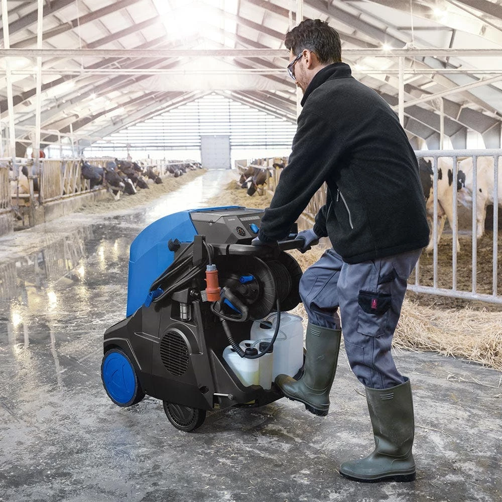 The MH 4M concept ensures the most optimal transport concept across a wide variety of surface types with the 4 large wheels and great balance. Optimal accessory storage facilities with double lance holders, turnable hook for easy removal or winding of electrical cable, innovative spray gun holder and easy storage of detergent tanks. Together with the quick service access to all vital parts, this series will provide remarkable cleaning results, saved time and reduced costs.
