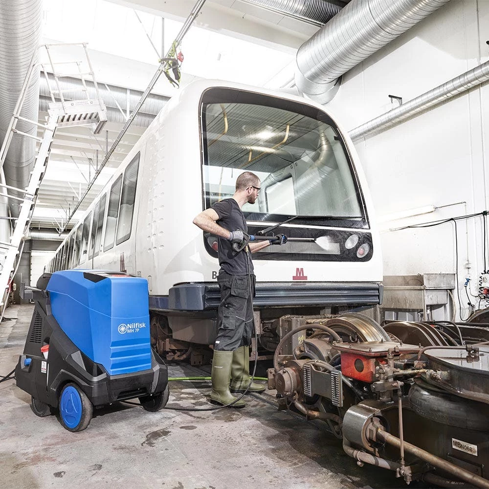 The tough and robust MH 7P series combines low running costs, ease of use, best in class mobility and high cleaning efficiency. The most effective tool for heavy-duty, industrial hot water cleaning in any sector. The MH 7P series features low running and maintenance costs, robustness, durability and high cleaning efficiency. Heating costs are reduced with the award-winning EcoPower boiler system with > 92% heating efficiency and high heating power levels for even hotter water. Sound level is reduced and lifetime extended with the famous C3 pump and 1450 rpm motor.